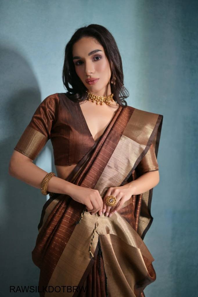 Fabric:Soft Banarasi raw silk saree with all over zari linning pattern and premium weaving effect with zari border and zari pallu with running blouse piece