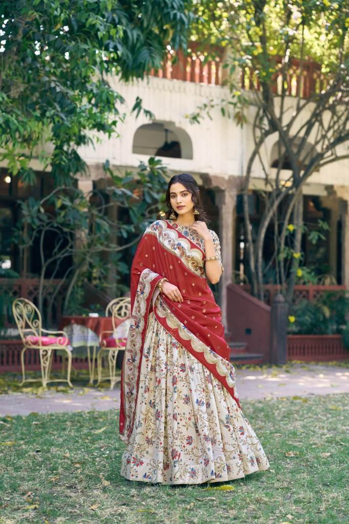 Soft tasar silk drape with radiant foil motifs a lehenga that shines with understated luxury LNB1256OWT