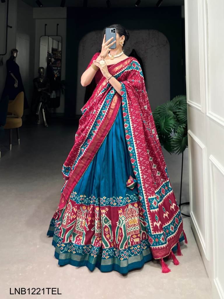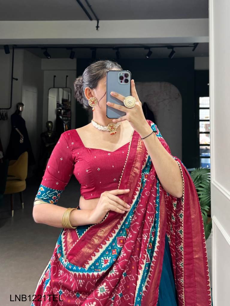 Dupatta work : Patola Print With Gotta Patti Lace Border also comes with tassels