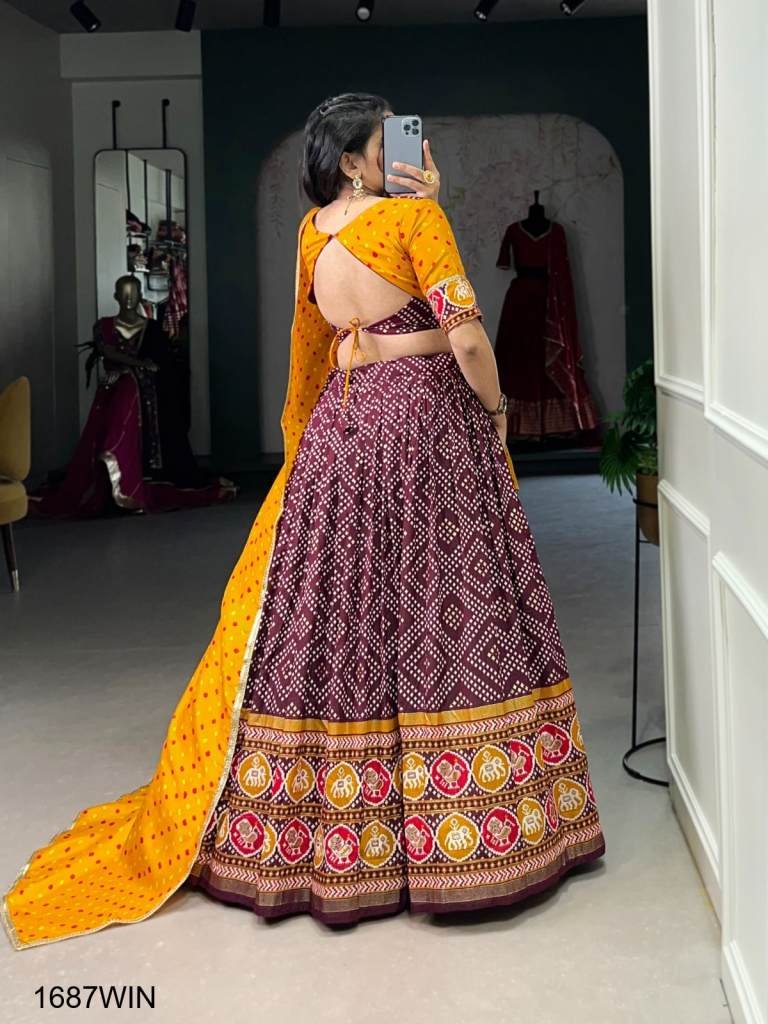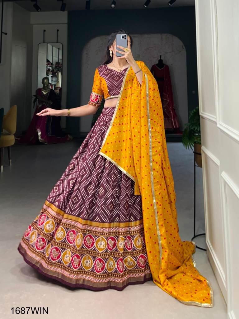 Lehenga Work : Bandhej And Patola Print With Foil Work