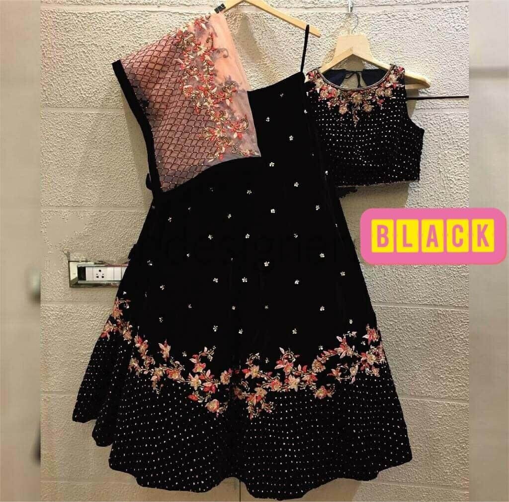 👉 *# LAHENGA *: VISCOS VELVET WITH EMBROIDERY WORK WITH RIVET MOTI WORK