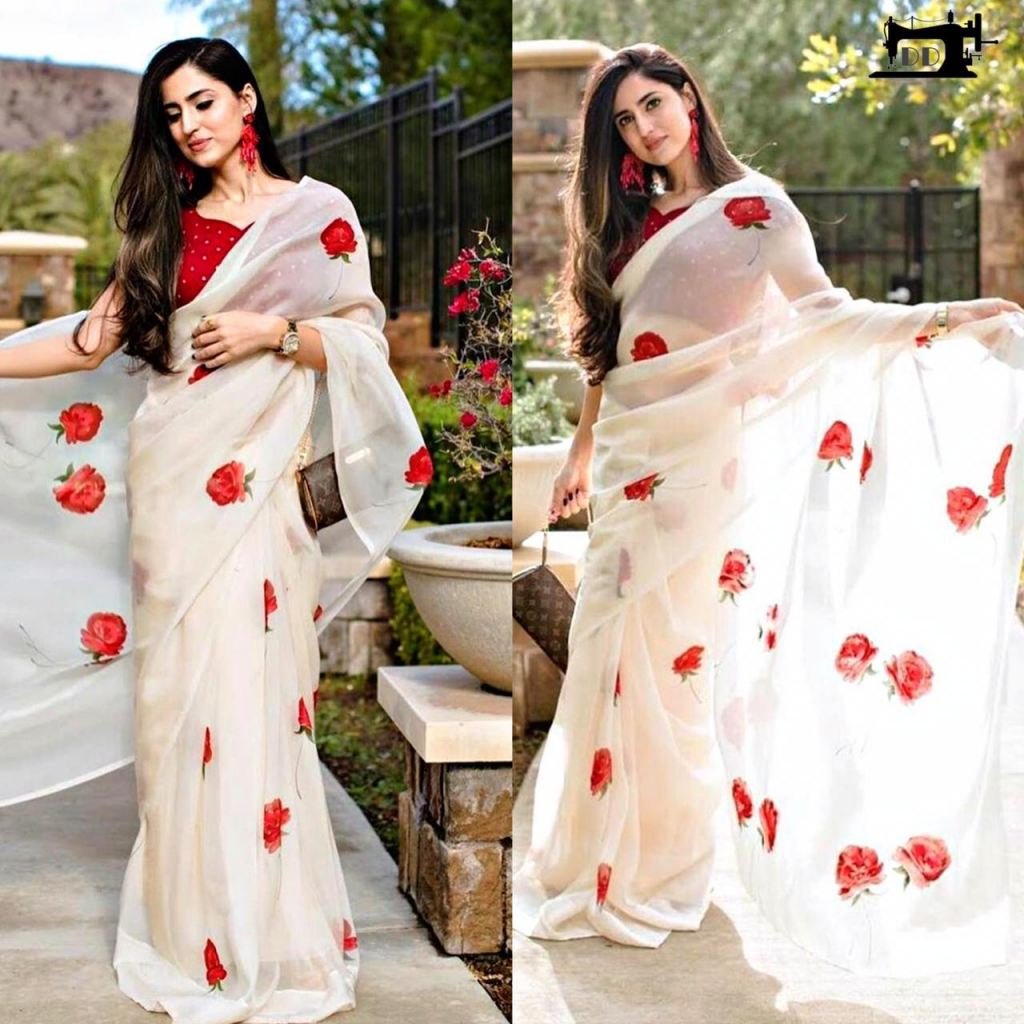 Saree – moss organza saree with complete heavy digital print 5.5 meter
