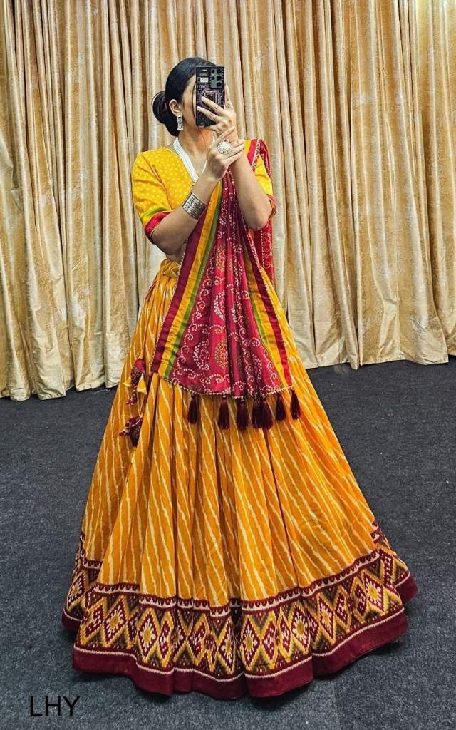 Dupatta Work : Bandhej Print With Gotta Patti Lace Border Also Comes With Tassels