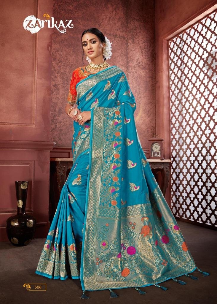 Buy Online Zarika Rajvee Banarasi Silk Designer Sky Color Saree At Best Price From Surati Fabric.